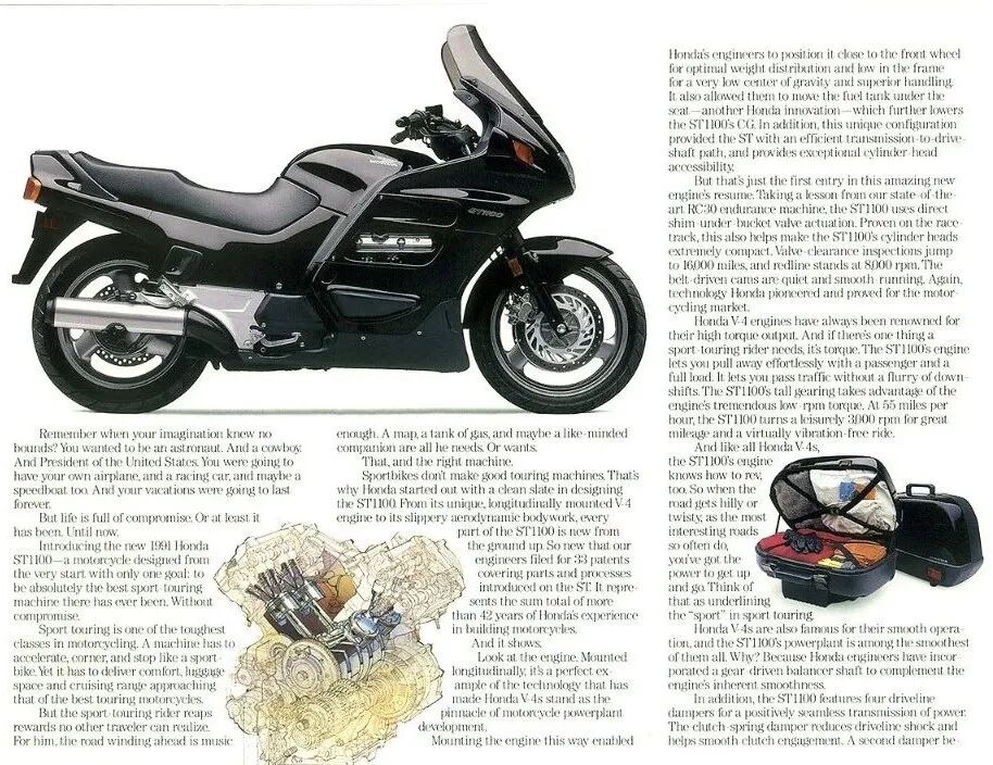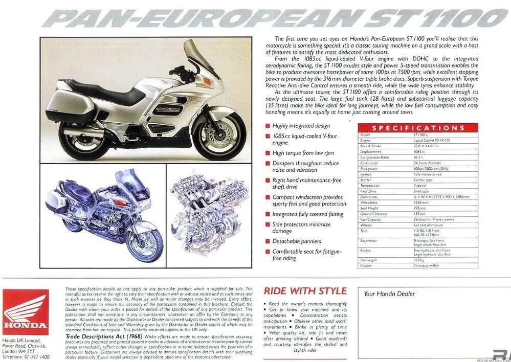 为了和宝马 K100LT、雅马哈 FJ1200 和 杜卡迪 ST 系列等对手竞争,Honda 在德国设立开发团队,推出了一款面向欧陆的长途专用车——ST1100(Pan-European)。