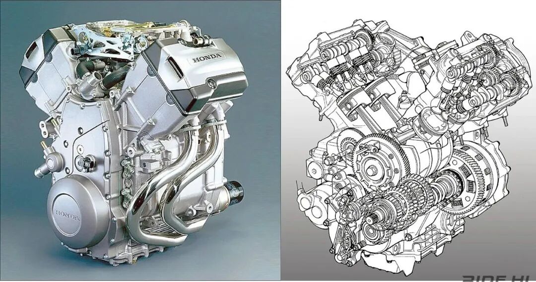不过 V4 发动机在扭矩输出过程中,天然会带来一定的反扭力,容易让整车在起步、加减速时出现车身轻微晃动感。本田为此加入了一个反向一级主传动轴(counter-rotating primary shaft),以抵消发动机输出时的反扭矩。