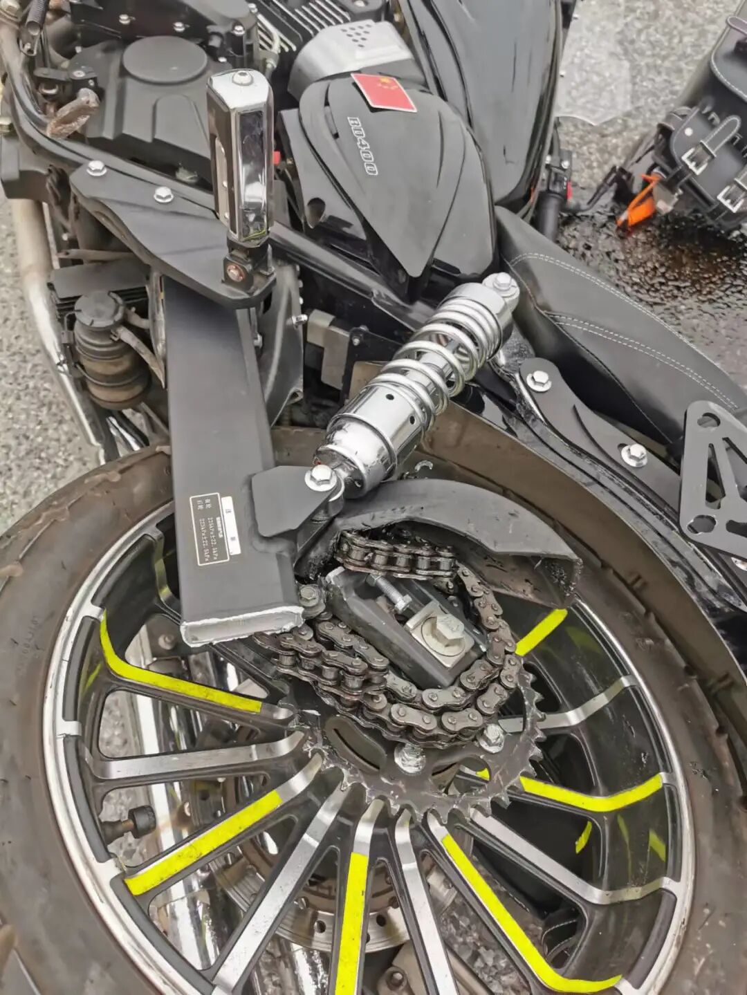 昨天报道的奔达400后平叉在骑行中断裂而导致车友摔伤事故,奔达昨晚公布了调查结果。大家比较关注的,引起事故发生的原因也查到了,车主承认是链条保养维护不当。