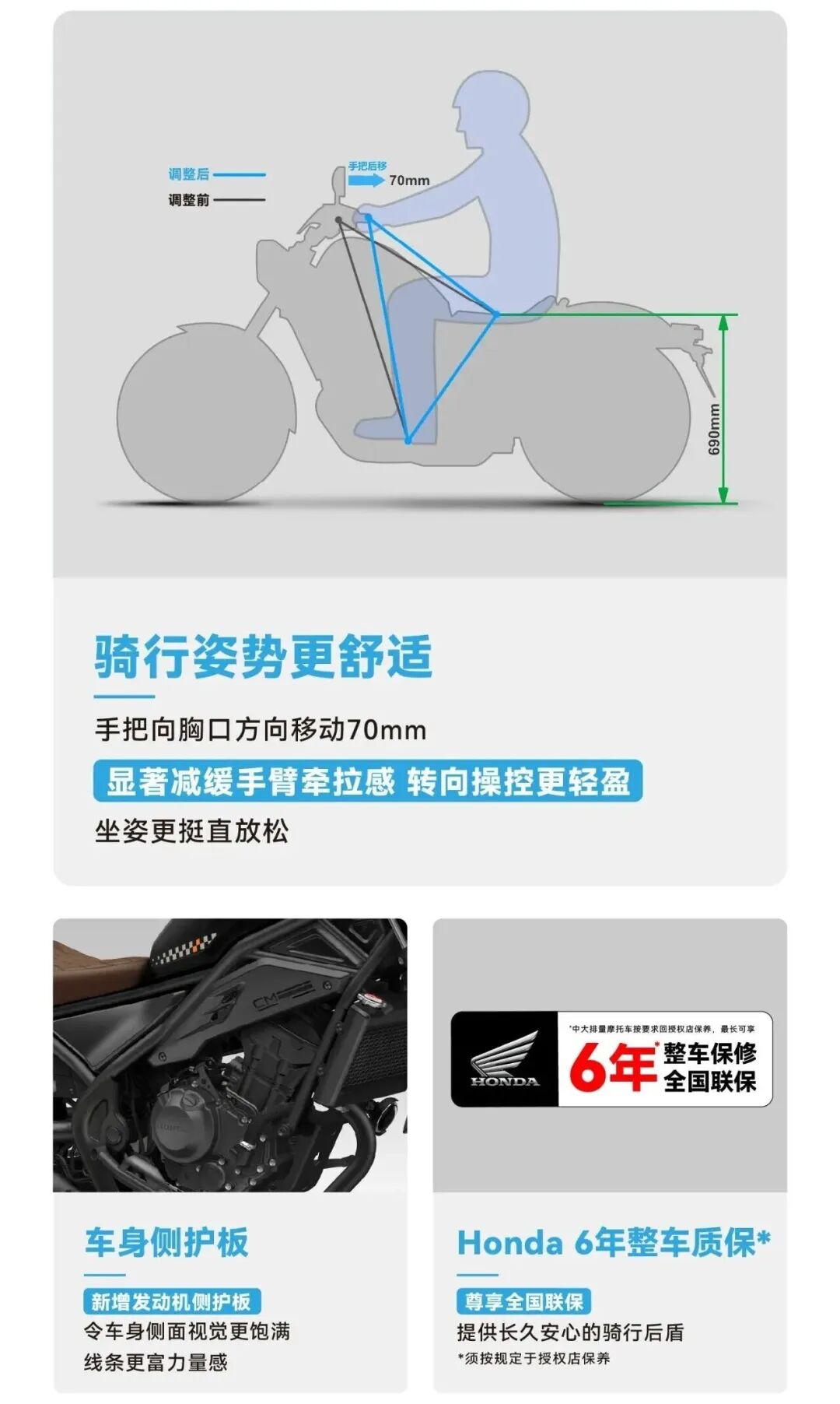 这台车自2021年上市以来没有过大改款,最大的变化就是售价从34500元降到了20980元,多了6年初整车质保,来了中国,强如本田也得水土不服。要说34500元的单缸300cc级巡航没有性价比,那现在可以说是入门必选车型之一。