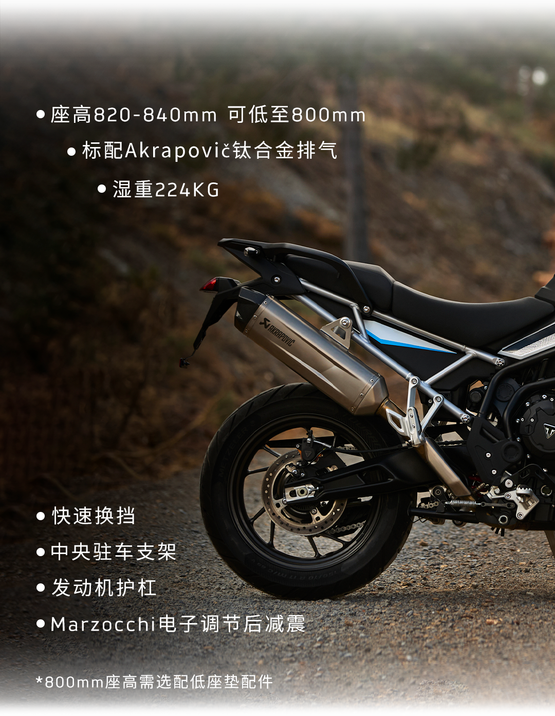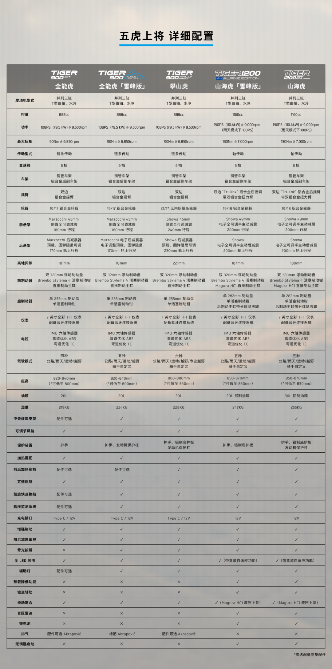 Tiger1200系列名称山海虎,取消发动机护杠,提高7mm离地间隙,减轻8kg。