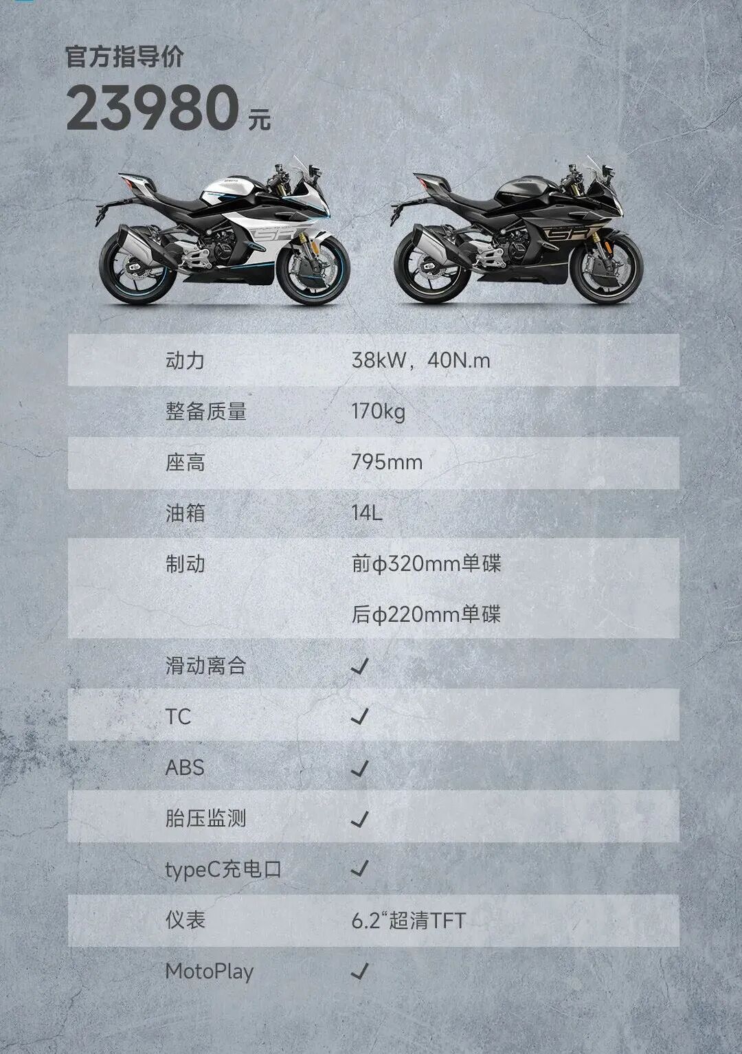 2026款450SR包括天蝎版,都是两款配色星光白、星光黑,普版主要升级是新的6.2寸超清TFT仪表,售价下调1000元;天蝎版等于是4600元买一根合法排气,值不值看个人。
