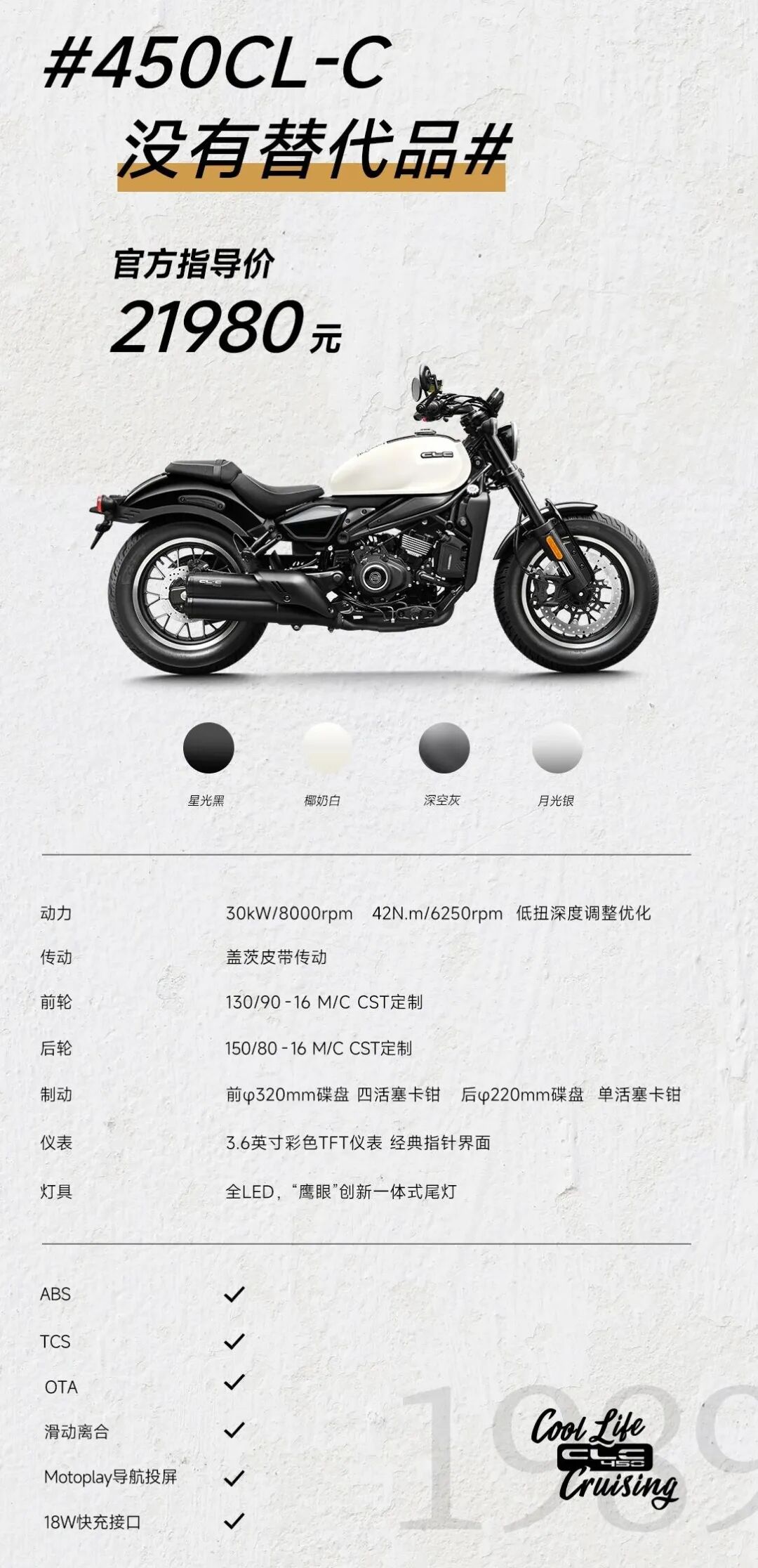 450CL-C降价2000元,此前发布AMT版没涨价,调整合理;450NK降价1000元,比SR少了新仪表。