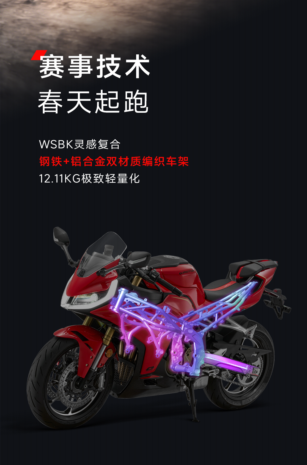 底盘方面,钢管编织+铝车架;铝合金后摇臂;前后全可调倒置马祖奇避震;前Brembo径向四活塞卡钳配300mm双盘,后对向双活塞卡钳配240mm单盘;前120/17,后160/17轮组搭配正新S3轮胎;在其他配置方面也可以说是全身名牌了。