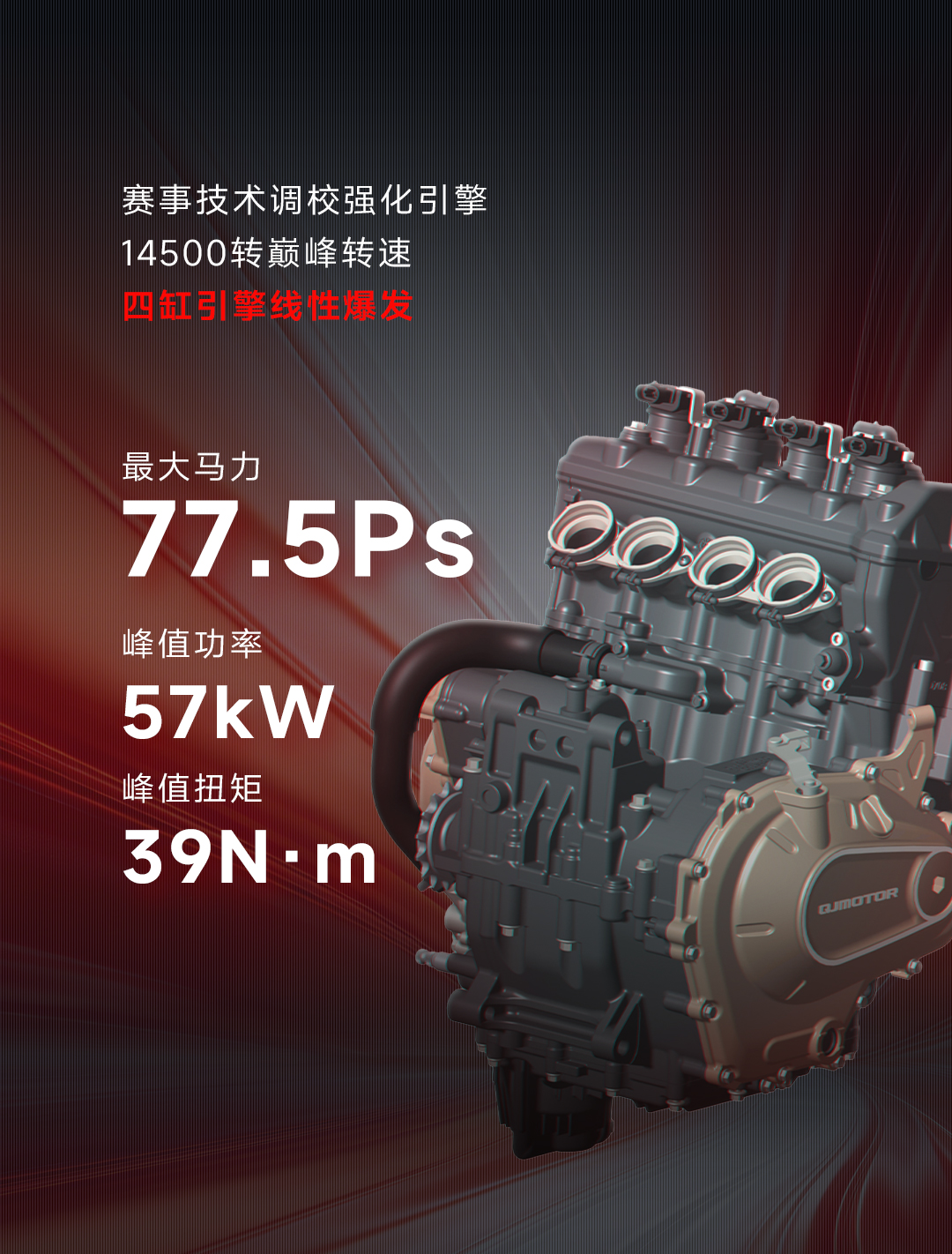 赛421是钱江新一代产品,在外观和技术上都和老系列相比更极客一些。421cc直列四缸发动机,压缩比12.6:1,在14000转输出最大马力77.5匹,13000转输出最大扭矩39牛米,极速220km/h,在极限马力表现上较同级有优势。目前网传新款会有造型变化,采用更犀利的设计,但没有提到动力方面有调整,暂时不需要有这方面的顾虑